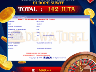 DEWATOGEL JACKPOT LIVE CASINO DI EUROPE SUWIT Rp 142.000.000,- LUNAS MEMBER DEWATOGEL MENERIMA PELUNASAN KEMENANGAN JACKPOT LIVE CASINO DI EUROPE SUWIT Rp 142.000.000,- LUNAS “DEWATOGEL […]
