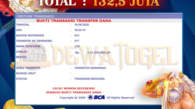 DEWATOGEL mengucapkan selamat kepada user id : APA*** yang telah berhasil mendapatkan jackpot pada permainan SLOT DI SWEET BONANZA. Kemenangan sebesar Rp 132.500.000,-. telah dibayarkan LUNAS oleh pihak dewatogel kepada pemilik user id setelah yang bersangkutan mengisi formulir withdraw. Proses pencairan dana berlangsung sangat cepat hanya dalam waktu 5-10 menit sudah berada dalam rekening pemilik user id. Bukti transfer yang dapat anda lihat adalah bukti SAH / VALID yang langsung di dapatkan melalui bukti transaksi dari Bank yang digunakan untuk pengiriman dana pada rekening pemilik user id. Terima kasih kami sampaikan kepada para pengguna setia DEWATOGEL yang telah menggunakan situs kami, sebagai Bandar Terpercaya yang pastinya membayar semua kemenangan member hingga lunas. Apakah DEWATOGEL PENIPU ? Reputasi “DEWATOGEL TERPERCAYA” sudah sangat melekat. puluhan hingga ratusan ribu pengguna setia DEWATOGEL tetap menggunakan situs terbesar dan terbaik di Indonesia ini. Hapus rasa was-was dan khawatir anda, kemenangan anda berapapun PASTI dibayarkan hingga lunas.
