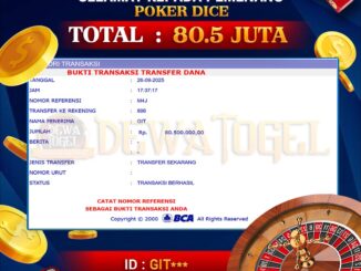 DEWATOGEL JACKPOT LIVE CASINO DI POKER DICE Rp 80.500.000,- LUNAS