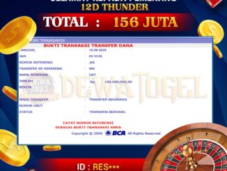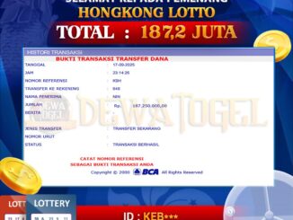 DEWATOGEL JACKPOT TOGEL DI HONGKONG LOTTO Rp 137.000.000,- LUNAS